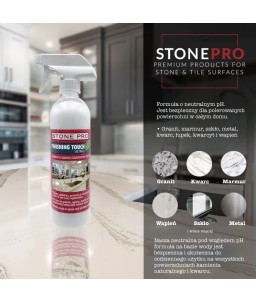 Środek nie zawiera agresywnych substancji niszczących kamień ani wywołujących szkodliwe reakcje chemiczne. W rezultacie jest bezpieczny do stosowania na blatowych powierzchniach w kuchni, gdzie liczy się higiena i zachowanie naturalnych właściwości kamienia.