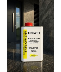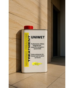 Impregnat do kamienia naturalnego UNIWET to profesjonalny środek do nabłyszczania kamienia, który nadaje matowym powierzchniom, takim jak piaskowiec, wapień, marmur czy granit, wyjątkowy *efekt mokrego kamienia. Podkreśla naturalną teksturę oraz kolor, maskuje drobne defekty, takie jak matowienie i rysy. Ten rozpuszczalnikowy preparat zapewnia trwałą ochronę przed wodą, olejami oraz plamami (np. soki, wino, tłuszcz). W prosty i niedrogi sposób ułatwia utrzymanie czystości na powierzchniach kamiennych.